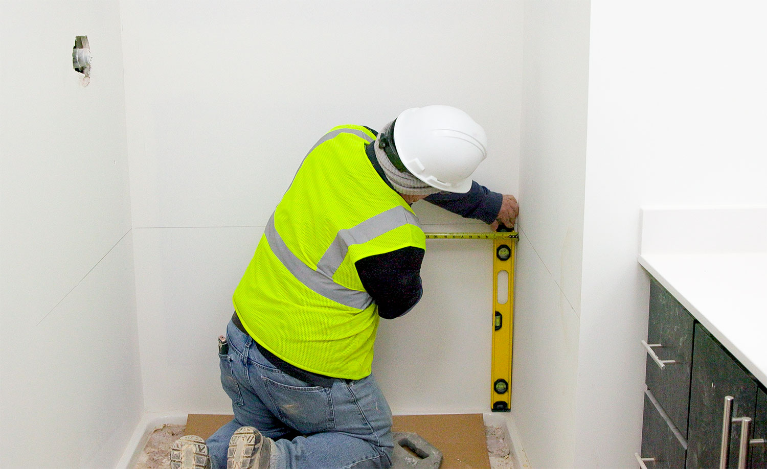 - Utility knife or oscillating tool. Have it on hand for power outlet cut-outs and other cuts.